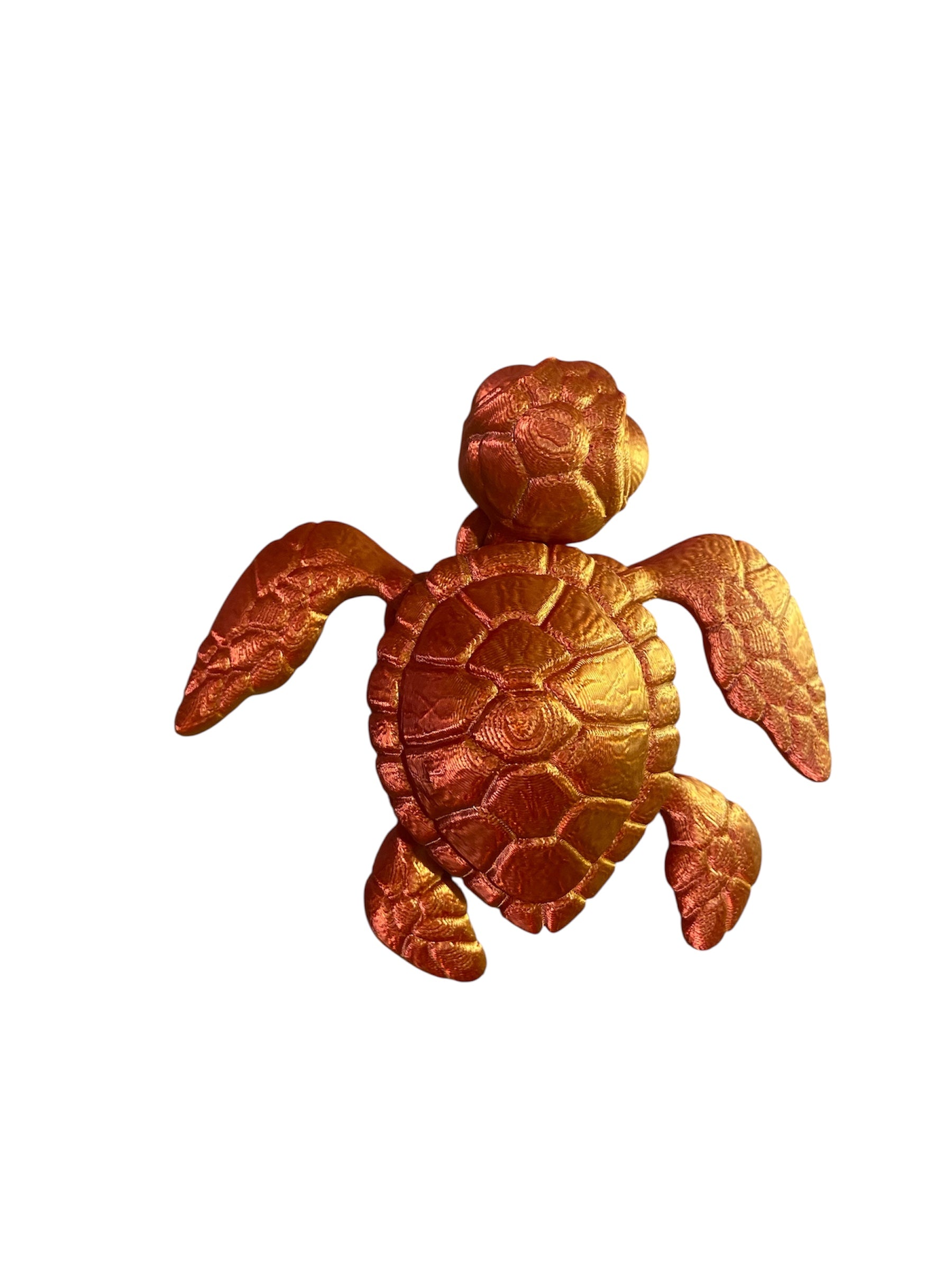 3D printed 4-1/2" Sea Turtle - Red/Gold