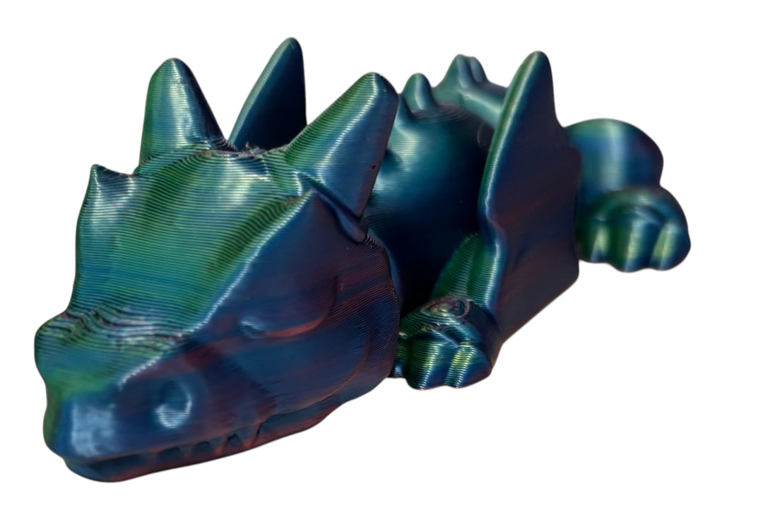 3D printed Lazy Dragon - 8-1/4" - Blue / Green / Purple