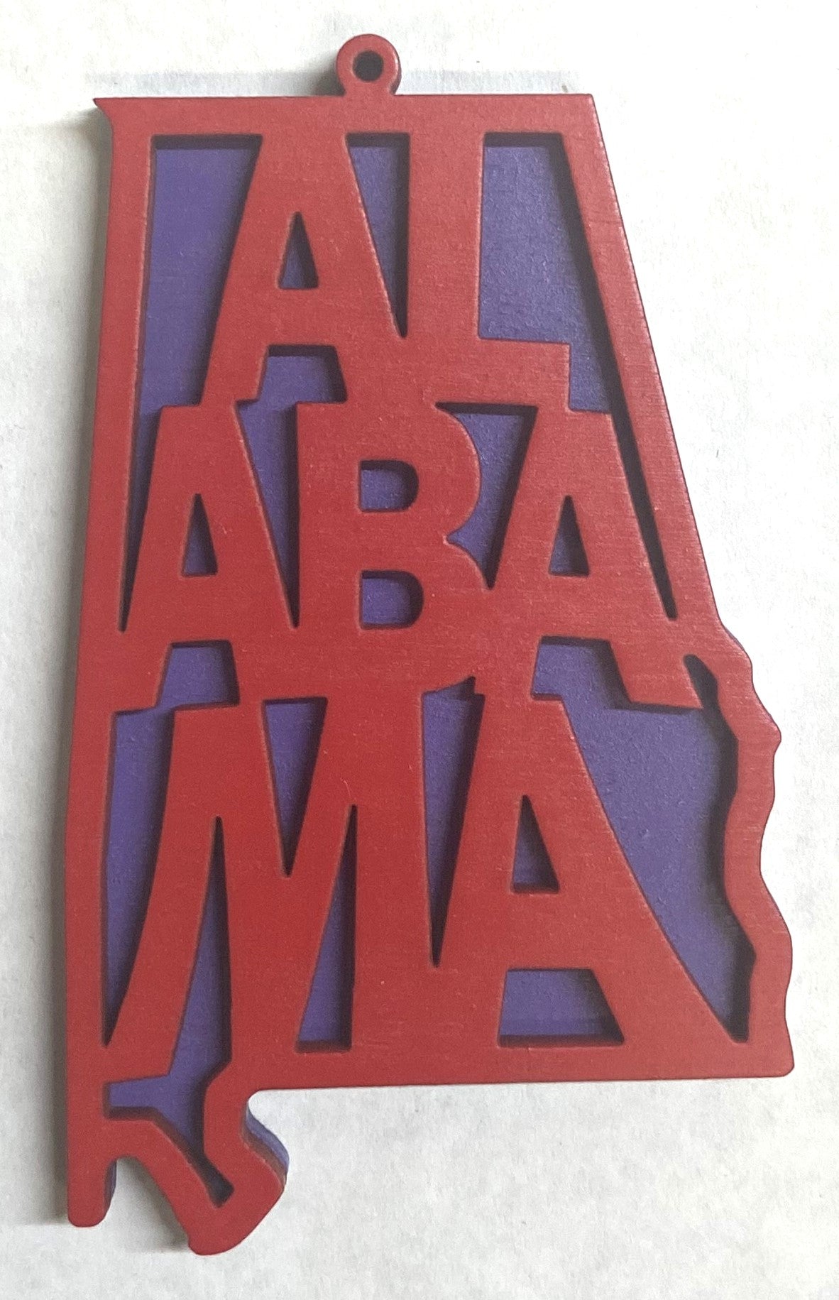 Alabama Wood Ornament - 4" x 2.4" - Red over Grape