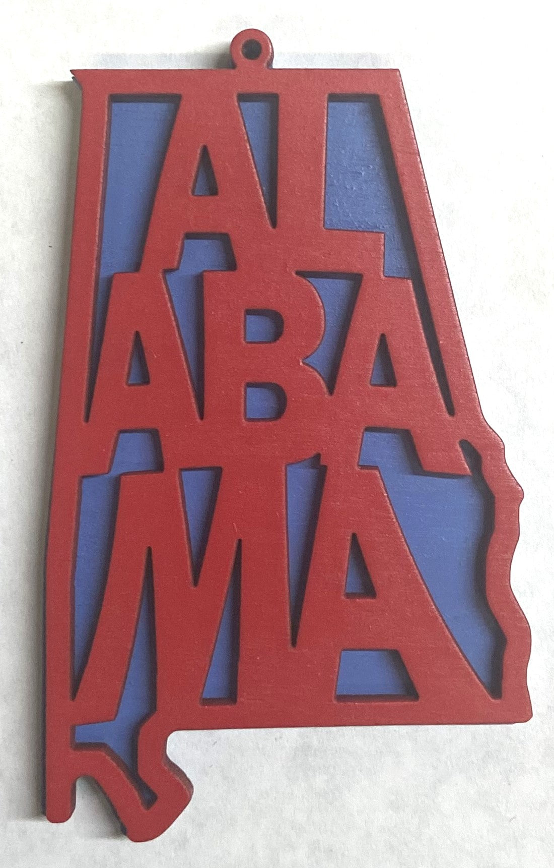 Alabama Wood Ornament - 4" x 2.4" - Red over Wildflower Blue