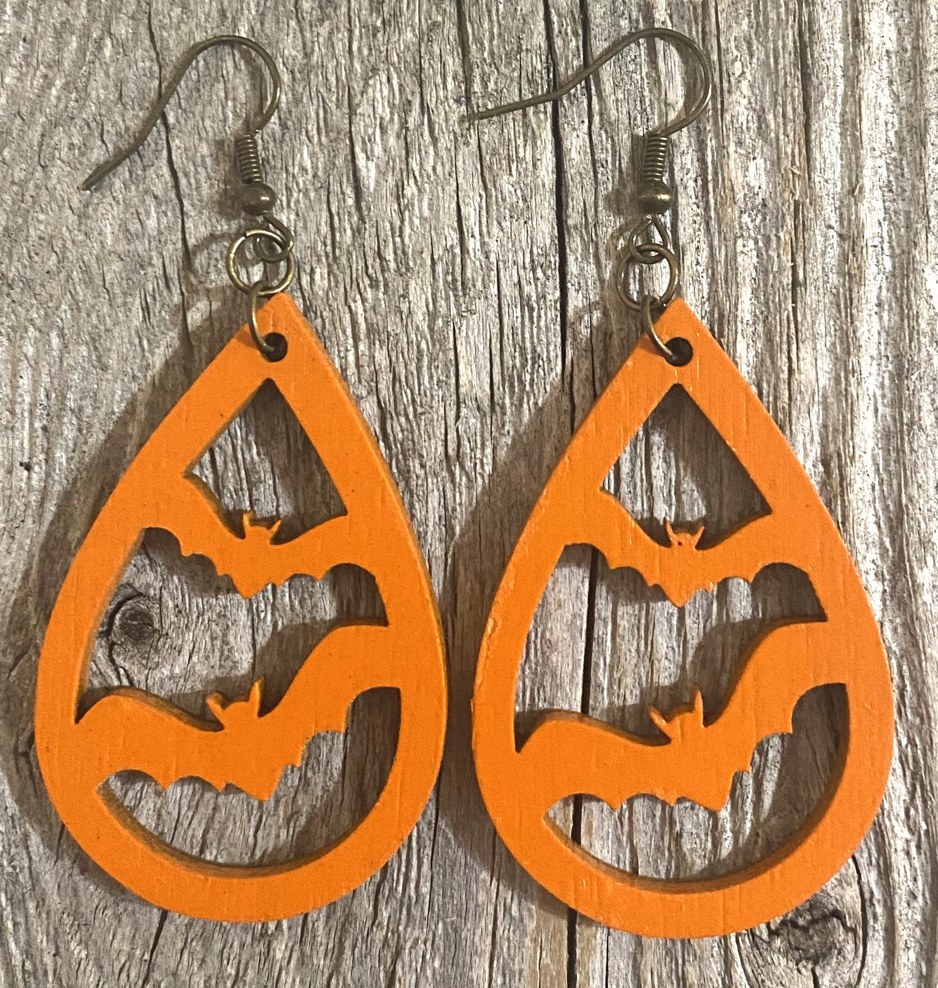 Bat Wood Earrings, Orange