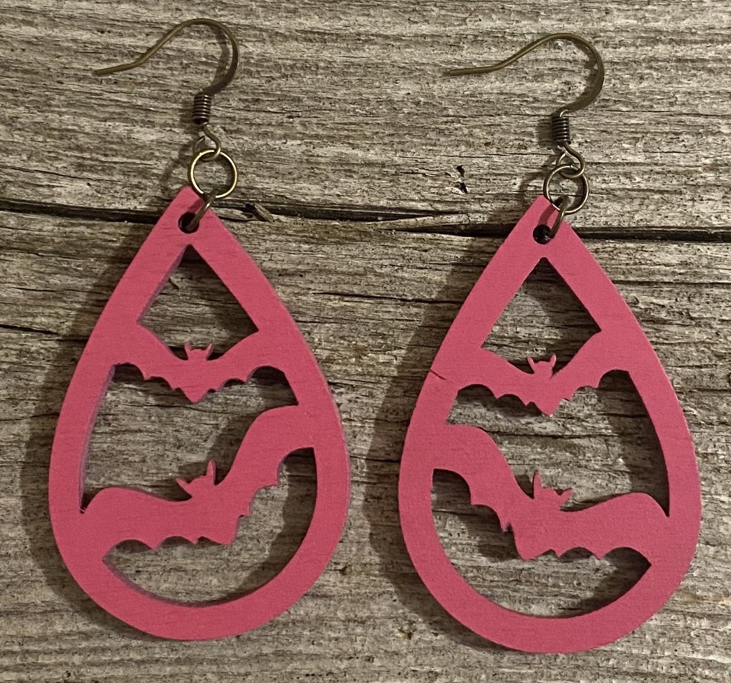 Bat Wood Earrings, Pink