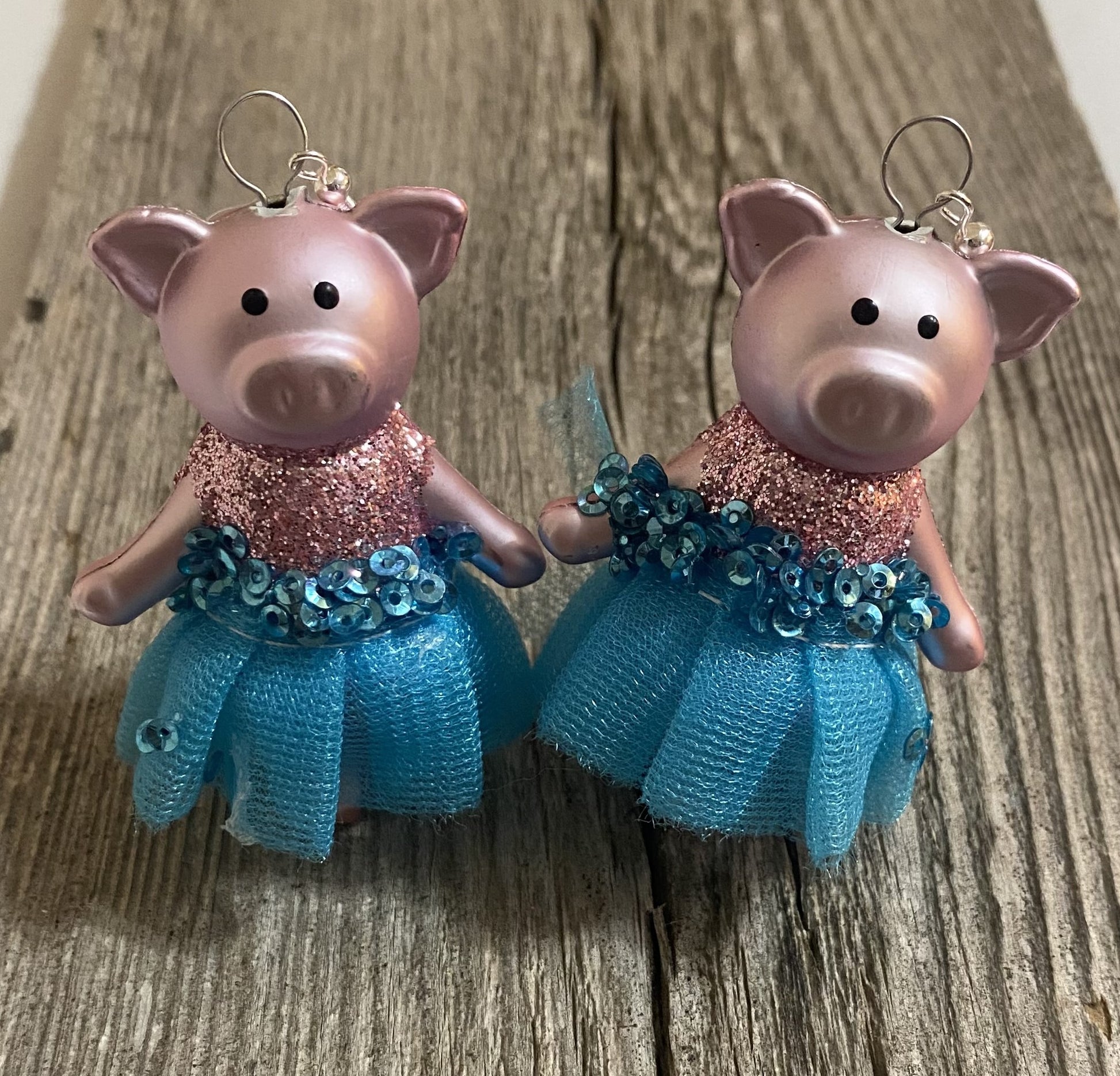 Pig Earrings, Blue