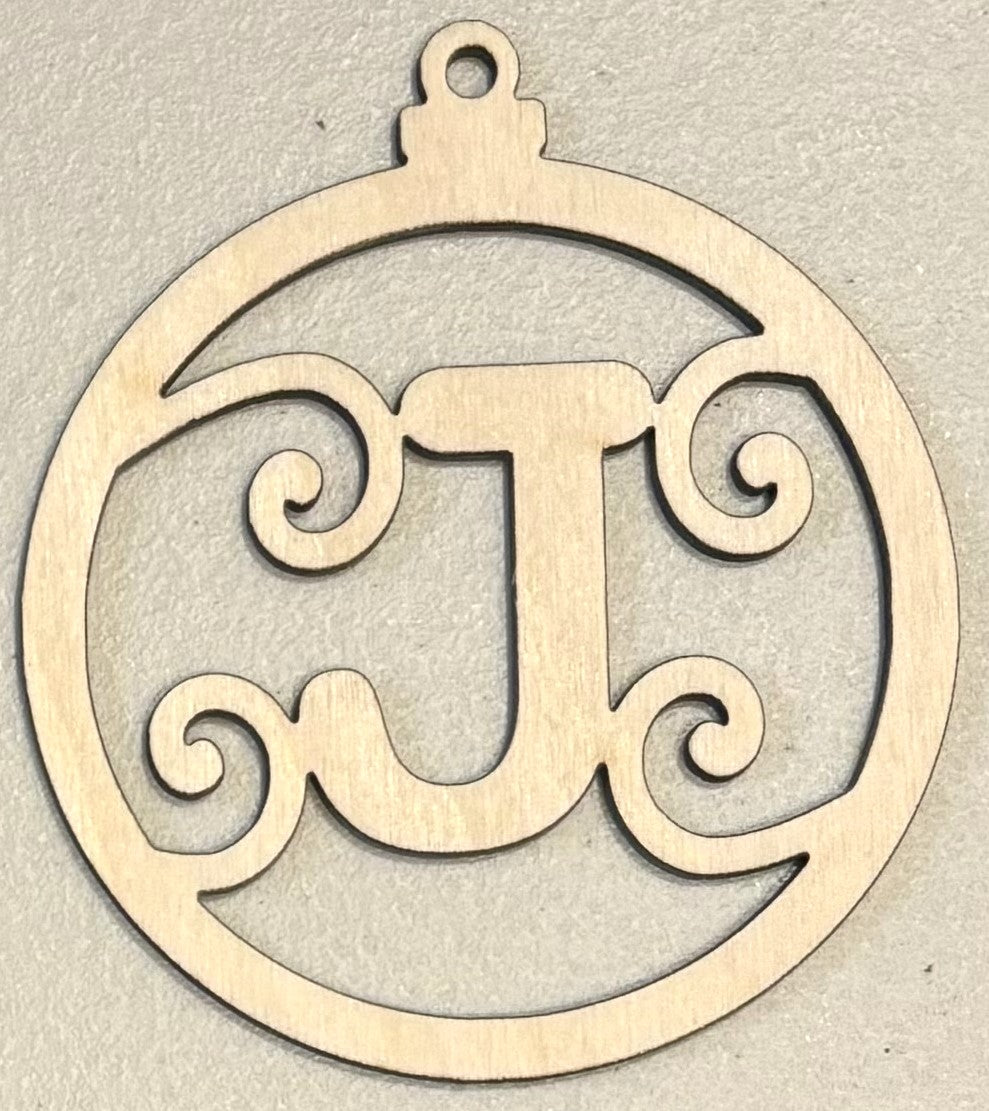 Ready to Paint Ornament - 1/8" Plywood - "J" Ornament - S373