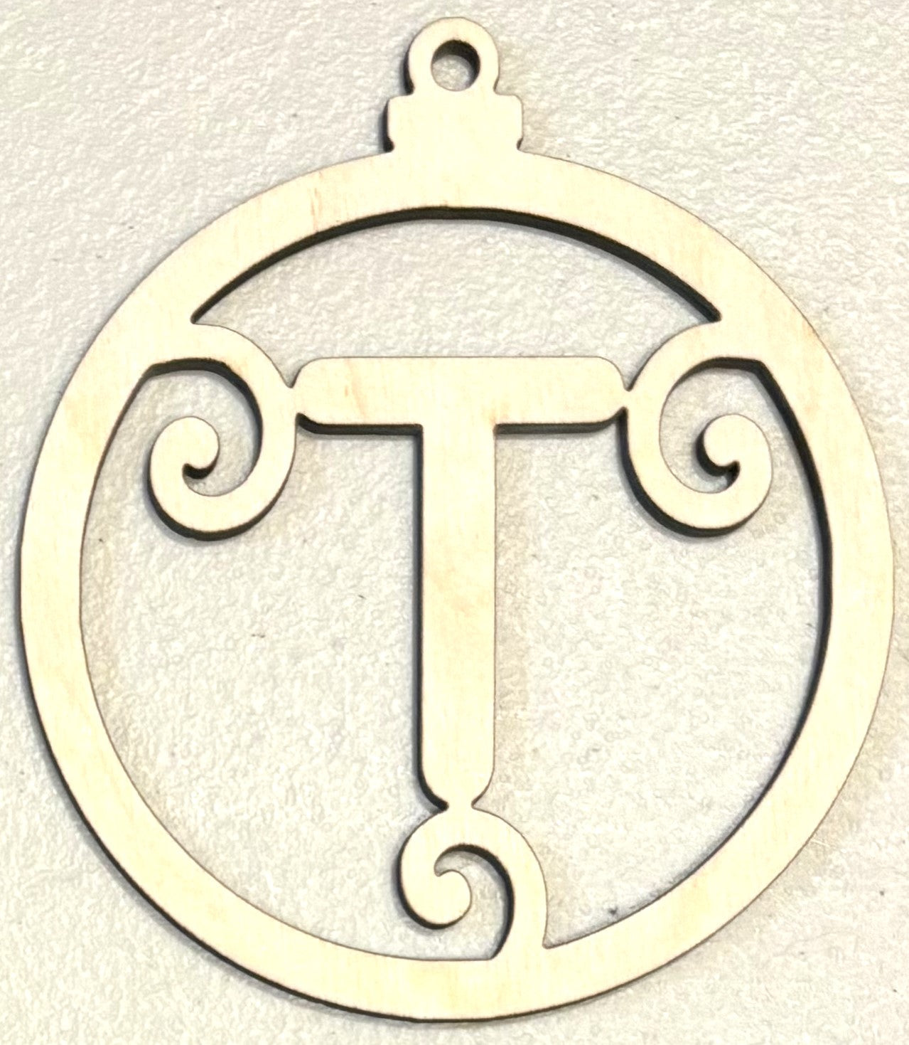 Ready to Paint Ornament - 1/8" Plywood - "T" Ornament - S383