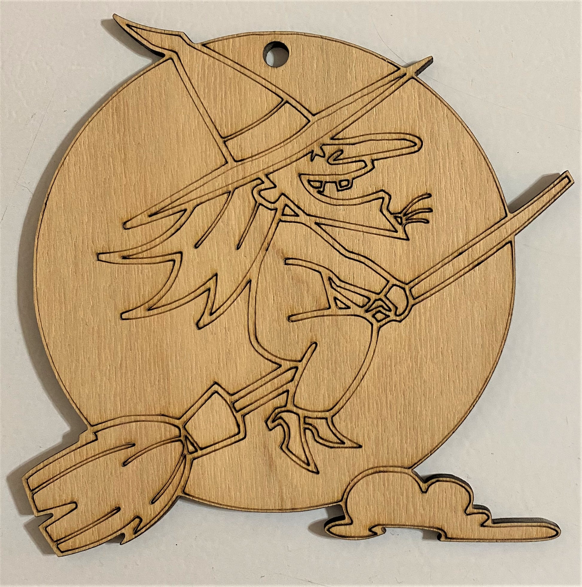 Ready to Paint Shape - 1/8" Birch - Witch w/ Moon - S077