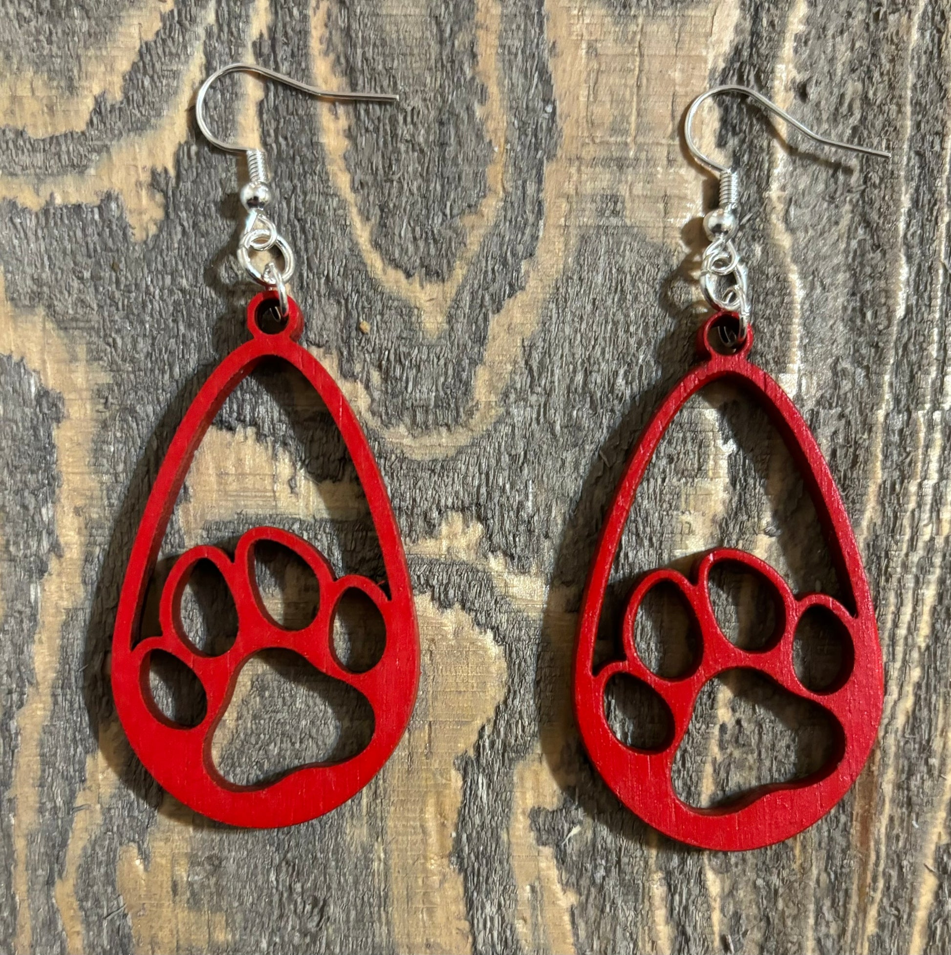 Teardrop Paw Wood Earrings, Red