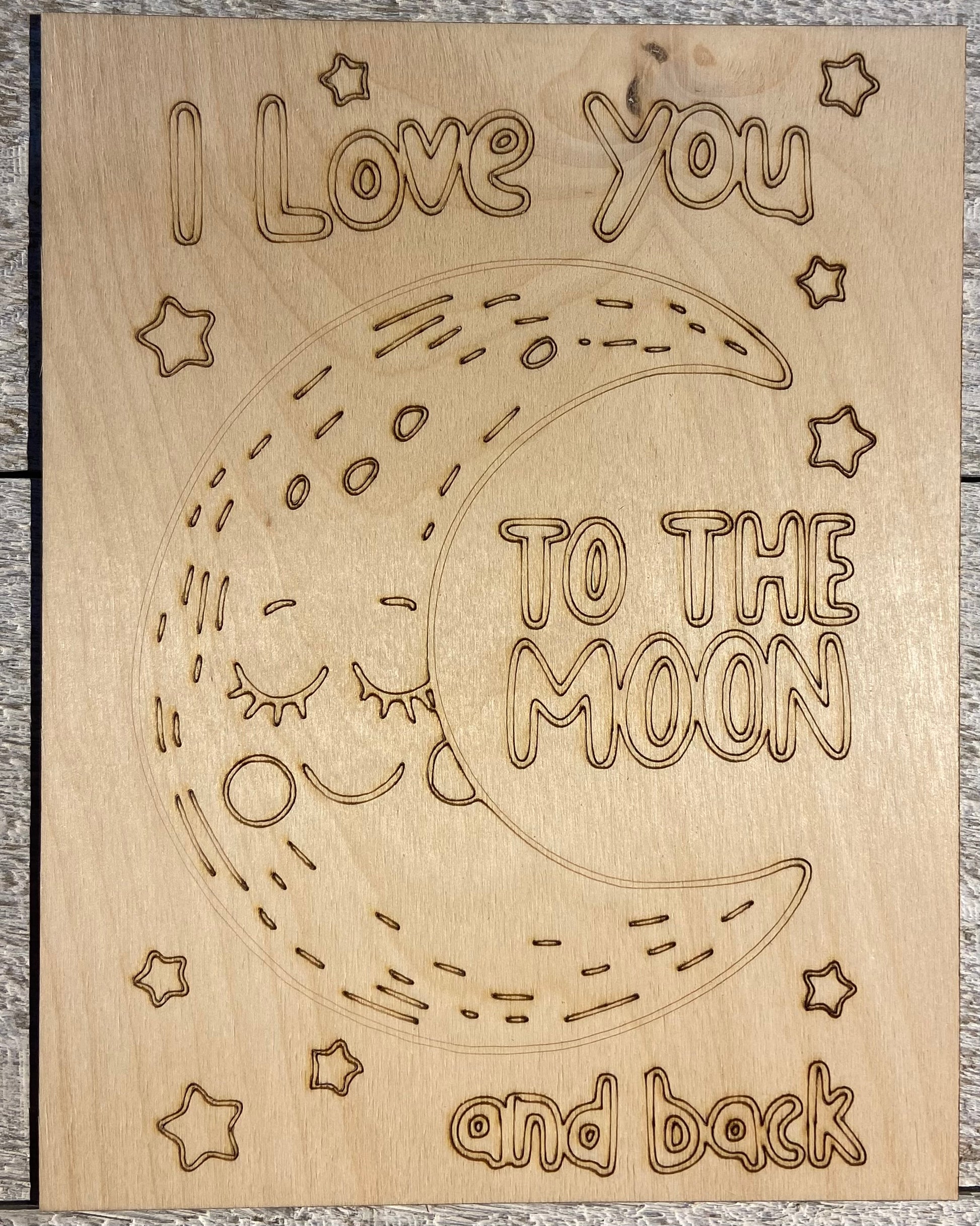 Wood Coloring Board - 1/8" Plywood - 7x9 I Love You to the Moon and Back