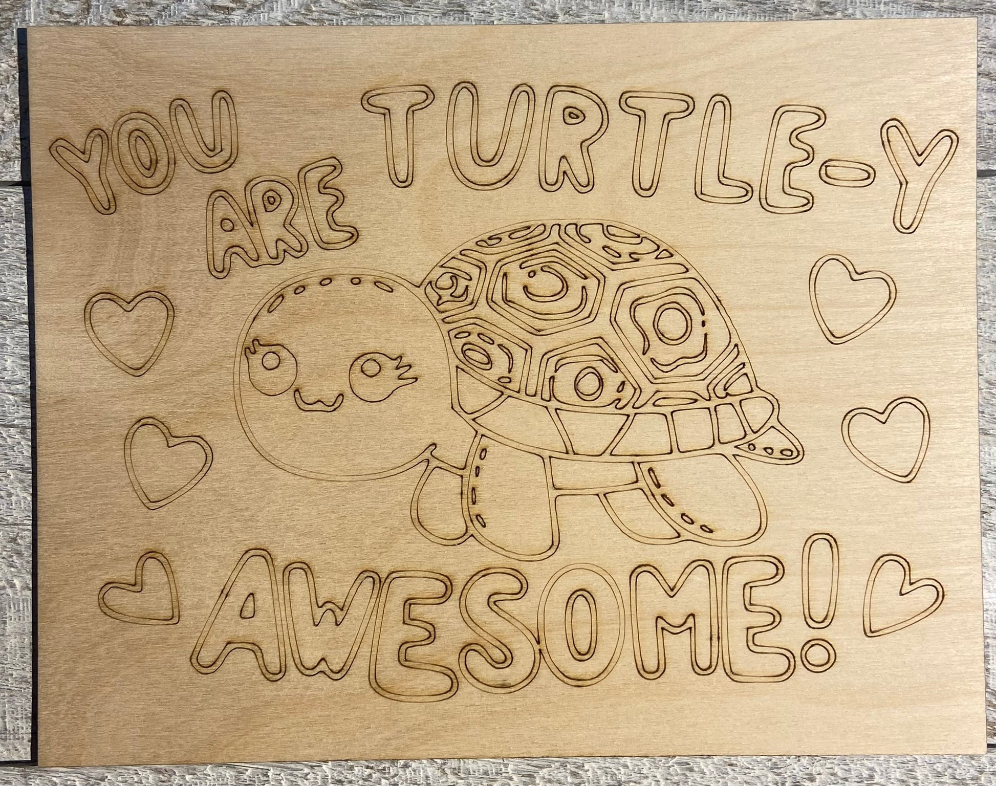 Wood Coloring Board - 1/8" Plywood - 7x9 You Are Turtle-y Awesome